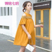 锦铭七玥孕妇装夏装雪纺孕妇连衣裙韩版甜美宽松露肩孕妇裙上衣潮