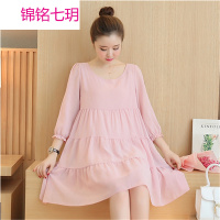 锦铭七玥新孕妇雪纺连衣裙韩版孕妇装宽松大码中长孕妇上衣夏荷叶边