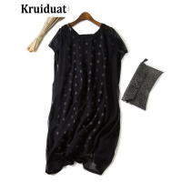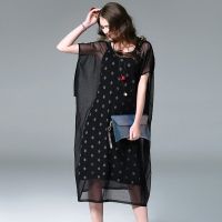 默蒂梵2017夏季新款波点网纱打底衫两件套女宽松大码连衣裙 人丝长裙 黑色 均码