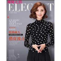 锦铭七玥20春秋新款百搭高领波点网纱长袖打底衫女宽松大码上衣恤衫