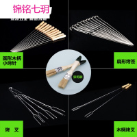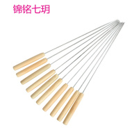 不锈钢圆签烧烤针木柄烧烤工具10只装烤针烤叉用野户外