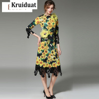 Kruidvat欧美女装圆领立体菊花拼接水溶花蕾丝连衣裙M027花色