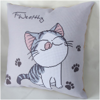 2017新款5D印花十字绣线绣抱枕沙发靠垫汽车礼物猫可爱卡通动漫物