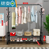 敬平落地挂衣架折叠晾衣架宿舍用室内卧室凉衣服杆架子学生家用晒衣架 135cm-黑[升级7挂钩]双层置物网 中