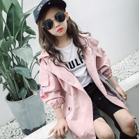 时尚女童风衣外套中长款春秋新款韩版童装中大童连帽w