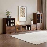 钢化玻璃台面半开放式储物橡胶木实木脚