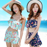听浪2015新款分体泳衣女士可爱荷叶边小胸聚拢钢托游泳衣韩国泳装