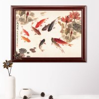 中式实木电表箱装饰画推拉国画配电箱液压上翻电闸箱画餐厅画九鱼