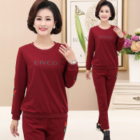 中老年女装秋冬新款长袖T恤+长裤绣花真二件套装妈妈休闲广场舞服