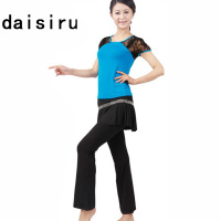 户外短袖广场舞服舞蹈服拉丁舞银边裙裤丝网广场舞套装