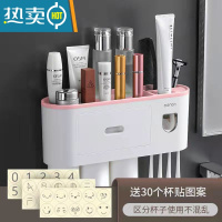 敬平牙刷置物架刷牙杯漱口挂墙式卫生间免打孔壁挂网红收纳架牙缸套装 粉色 三口之家[1个牙膏器] 送杯贴和牙刷浴室置物架