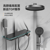 送安装汉德斯科淋浴花洒套装恒温沐浴器贴墙安装带腰喷圆形高端全铜瀑布空气增压钢琴按键家用浴室淋雨喷头调温大置物WBS9