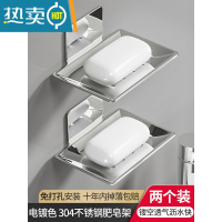 敬平上墙不锈钢香皂肥皂盒壁挂式沥水免打孔皂碟卫生间浴室收纳置物架 电镀本色/304不锈钢肥皂架 两个装