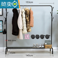 敬平衣架落地卧室单杆式简易小型晾衣杆家用宿舍房间挂衣架阳台晒衣架 黑色 长120高130晾晒架