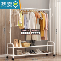敬平晾衣架落地卧室内挂衣架折叠家用阳台晒衣服架子简易单杆式衣帽架 150cm⭐特粗双层-加固7钩-白❤25管粗 大