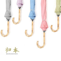半自动日式马卡龙色系14骨简约纯色长柄伞创意竹柄小清新晴雨伞女