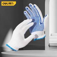 得力工具DL521022涤纶PVC点珠手套L码12副(蓝)(包)