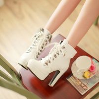 性感白色系带短靴马丁靴春秋冬女鞋防水台粗跟高跟夜店骑士裸单靴