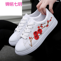 锦铭七玥春季刺绣小白鞋韩版百搭帆布鞋女鞋白色休闲板鞋学生厚底原宿布鞋