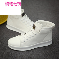 锦铭七玥秋季高帮鞋男英伦风黑色厚底板鞋高邦休闲白色街舞潮鞋嘻哈小白鞋