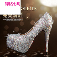 锦铭七玥新款红色水晶婚鞋新娘女细跟白色镶钻伴娘性感夜店超高跟鞋防水台