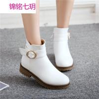 锦铭七玥女鞋春秋学院孕妇妈妈旅游平底休闲黑色白色大码短靴子 40-43 xr