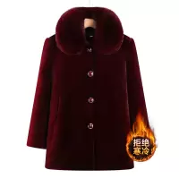 奶奶冬装皮毛一体外套加绒加厚老年女装中长款大衣老人老太太衣服