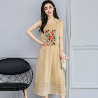 真丝连衣裙女夏季新款妈妈收腰a字显瘦气质大码雪纺中长裙子