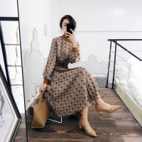 YIBUSHENG碎花连衣裙女春秋2021年新款收腰棉长袖打底裙高级感气质中长裙