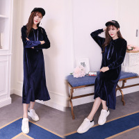 韩妃图(HANFEITU)2017秋冬小清新碎花加绒加厚卫衣孕妇连衣裙