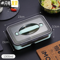 三维工匠304不锈钢保温饭盒 日式学生分隔餐盒上班族便携带盖大容量便当盒 小麦单层北欧绿[1000]