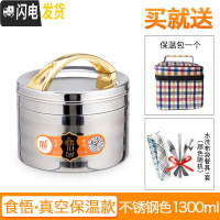 三维工匠分隔型不锈钢保温饭盒桶食堂便当盒分格午餐盒上班便携带盖餐盘大 真空款不锈钢色1.3+保温包