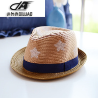 儿童帽子韩版女童百搭男孩夏天爵士帽度假出游遮阳帽牛仔草编礼帽