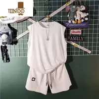 YANXU背心短裤套装男夏季坎肩无袖t恤休闲运动套男装搭配一套帅气