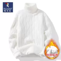 啄木鸟高领毛衣男冬季加绒加厚纯色羊毛衫服保暖打底针织衫男羊绒
