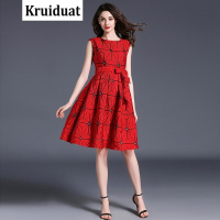 Kruidvat几何提花圆领无袖背心系带连衣裙夏2017
