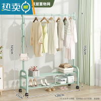 敬平简易单杆式衣帽架晾衣架落地折叠家用晒衣架阳台卧室室内挂衣架子 ♥♥店长推荐[120cm绿]☆加固加粗-双层☆25管径