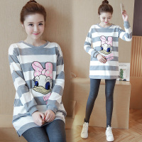 娉语孕妇冬装套装2016新款加绒加厚韩版中长款T恤连衣裙打底衫+孕妇裤