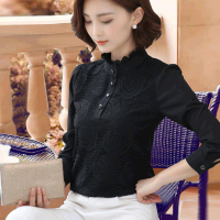 百搭黑色蕾丝打底衫女长袖秋冬加绒高领衬衫短款2017新款雪纺上衣