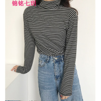锦铭七玥2018早春新款韩版时尚百搭高领条纹长袖坑条加绒针织衫打底衫女