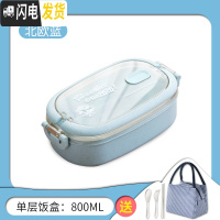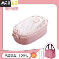 三维工匠分隔型学生饭盒上班族可微波炉加热餐盒套装大容量手提双层便当盒 单层饭盒+条纹袋[粉色]