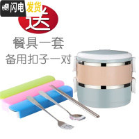 三维工匠304不锈钢学生保温饭盒儿童便当盒女性上班密封餐盒双层带饭盒2层 蓝色双层饭盒(送不锈钢餐具一套)