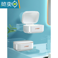 敬平肥皂盒壁挂式家用浴室卫生间免打孔轻奢创意沥水盒带盖香皂置物架 子夜蓝+象牙白[防水防尘-双层沥水-不泡皂]
