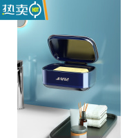 敬平肥皂盒壁挂式家用浴室卫生间免打孔轻奢创意沥水盒带盖香皂置物架 子夜蓝[防水防尘-双层沥水-不泡皂]
