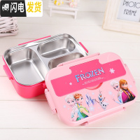 三维工匠304不锈钢分隔饭盒卡通可爱小学生分格餐盘儿童防烫带盖便当餐盒 三格粉冰雪款+勺筷子+KT袋子