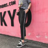 薇侣2017新品薄款侧边条纹九分小脚裤韩版修身休闲运动裤子夏季