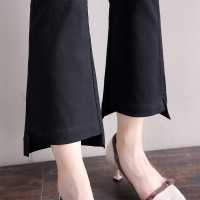顺崇2018高腰微喇叭裤女夏季2018新款韩版阔腿休闲黑色显瘦九分裤
