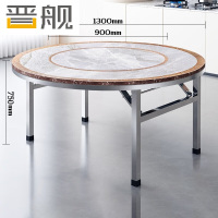 晋舰不锈钢内置转盘圆桌折叠圆桌带转盘1.3米内置0.9转盘全彩仿灰岩板