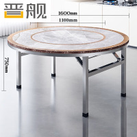 晋舰不锈钢内置转盘圆桌折叠圆桌带转盘1.6米内置1.1转盘全彩仿灰岩板