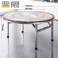 晋舰不锈钢内置转盘圆桌折叠桌带转盘1.18米内置0.8转盘全彩仿灰岩板